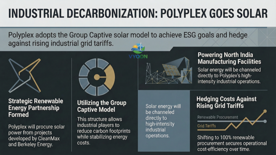 The arrangement is structured under the Group Captive model, allowing Polyplex to significantly reduce its carbon footprint while hedging against rising industrial grid tariffs. The solar power will be channeled to Polyplex’s manufacturing facilities in North India. This move follows a broader trend of energy-intensive industrial players in India shifting toward 100% renewable procurement to meet both ESG (Environmental, Social, and Governance) goals and operational cost-efficiency.