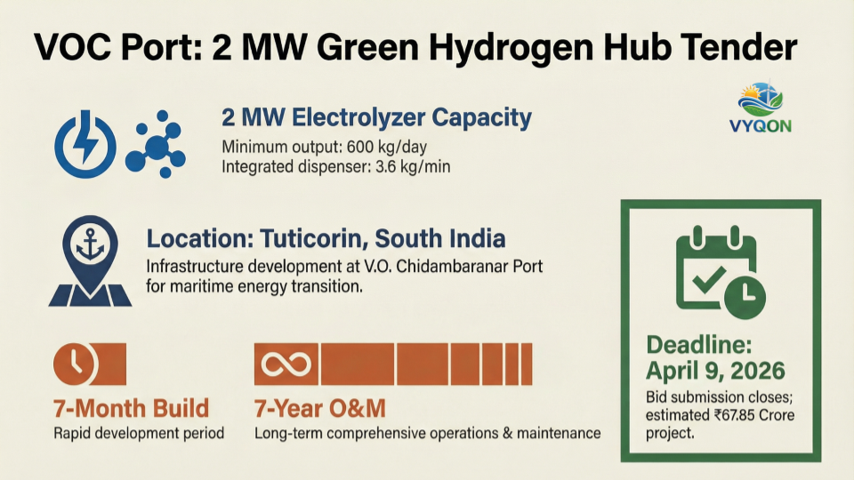 The maritime energy transition in South India is accelerating. The VOC Port Authority in Tuticorin has officially invited bids for a pilot-scale Green Hydrogen project.